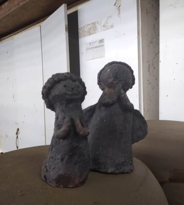 Eu comecei com 12 anos a mexer com o barro, olhando minha mãe, meu irmão e minha irmã fazendo as panelas. Eu fazia panelinhas, porque eu não sabia fazer panela grande. Engravidei morando com minha mãe, então continuei trabalhando para manter a minha criança. Depois, me casei com o pai do meu filho e fomos morar juntos. Anos se passaram, trabalhei fora, mas não deu certo, então resolvi voltar a fazer panelas de barro. Olhava meu irmão produzindo suas panelas e fui tentando fazer as panelas grandes, não sabia fazer tampa, mas como eu já tinha filhos e a necessidade faz o gato pular, da noite para o dia eu aprendi. Contando rápido parece uma história curta, mas foi muito longa e muito trabalhosa. Sou a quarta geração de panela, minha bisa fez panela, minha avó (mãe do meu pai), minha mãe e por fim passou pra mim. Minha avó se chamava Ana Carolina e minha mãe é Maria da Conceição Barbosa, ela é uma das paneleiras mais antigas vivas, não faz mais panela, mas já fez muitas. Meus filhos não tem interesse no trabalho, eles não querem. Minha filha veio pequenininha para cá, eu a colocava aqui no boxe, fazia uma cama, aí ela olhava outra criança fazendo algumas coisas e tentava também. Quando ela ficava aqui se distraía com o barro, fazia uns anjinhos com o material, uma vez uma turista de fora quis levar, no barro mesmo, ela ficou tão feliz com a venda. Eu guardo os anjinhos para quando ela tiver uma moça poder mostrar o que ela fazia com 6 anos. Da minha família, dos meus filhos, nenhum deles quer seguir. Eu não os deixava fazer esse trabalho, porque é muito doloroso, muito cansativo. Agora é uma época muito quente, a gente passa mal na fogueira. Quem chega e vê é muito bonito pronto, mas não sabe o processo que é.