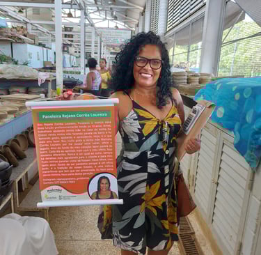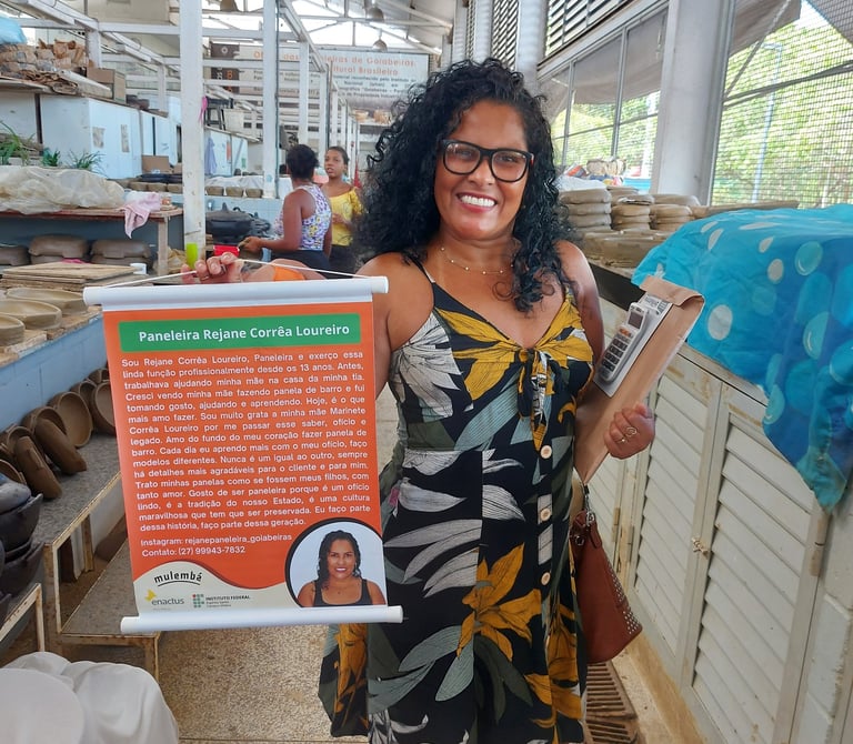 Sou Rejane Corrêa Loureiro, Paneleira e exerço essa linda função profissionalmente desde os 13 anos. Antes, trabalhava ajudando minha mãe na casa da minha tia. Cresci vendo minha mãe fazendo panela de barro e fui tomando gosto, ajudando e aprendendo. Hoje, é o que mais amo fazer. Sou muito grata a minha mãe Marinete Corrêa Loureiro por me passar esse saber, ofício e legado. Amo do fundo do meu coração fazer panela de barro. Cada dia eu aprendo mais com o meu ofício, faço modelos diferentes. Nunca é um igual ao outro, sempre há detalhes mais agradáveis para o cliente e para mim. Trato minhas panelas como se fossem meus filhos, com tanto amor. Gosto de ser paneleira porque é um ofício lindo, é a tradição do nosso Estado, é uma cultura maravilhosa que tem que ser preservada. Eu faço parte dessa história, faço parte dessa geração.